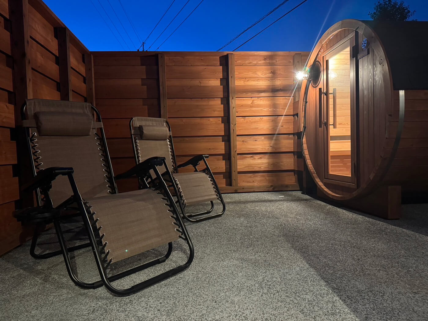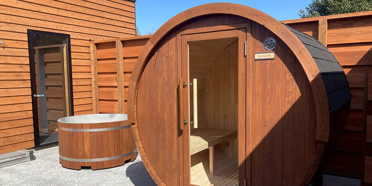 2つの貸切サウナユニット。カップル、友人、ご家族でゆったりとお楽しみいただけます。
